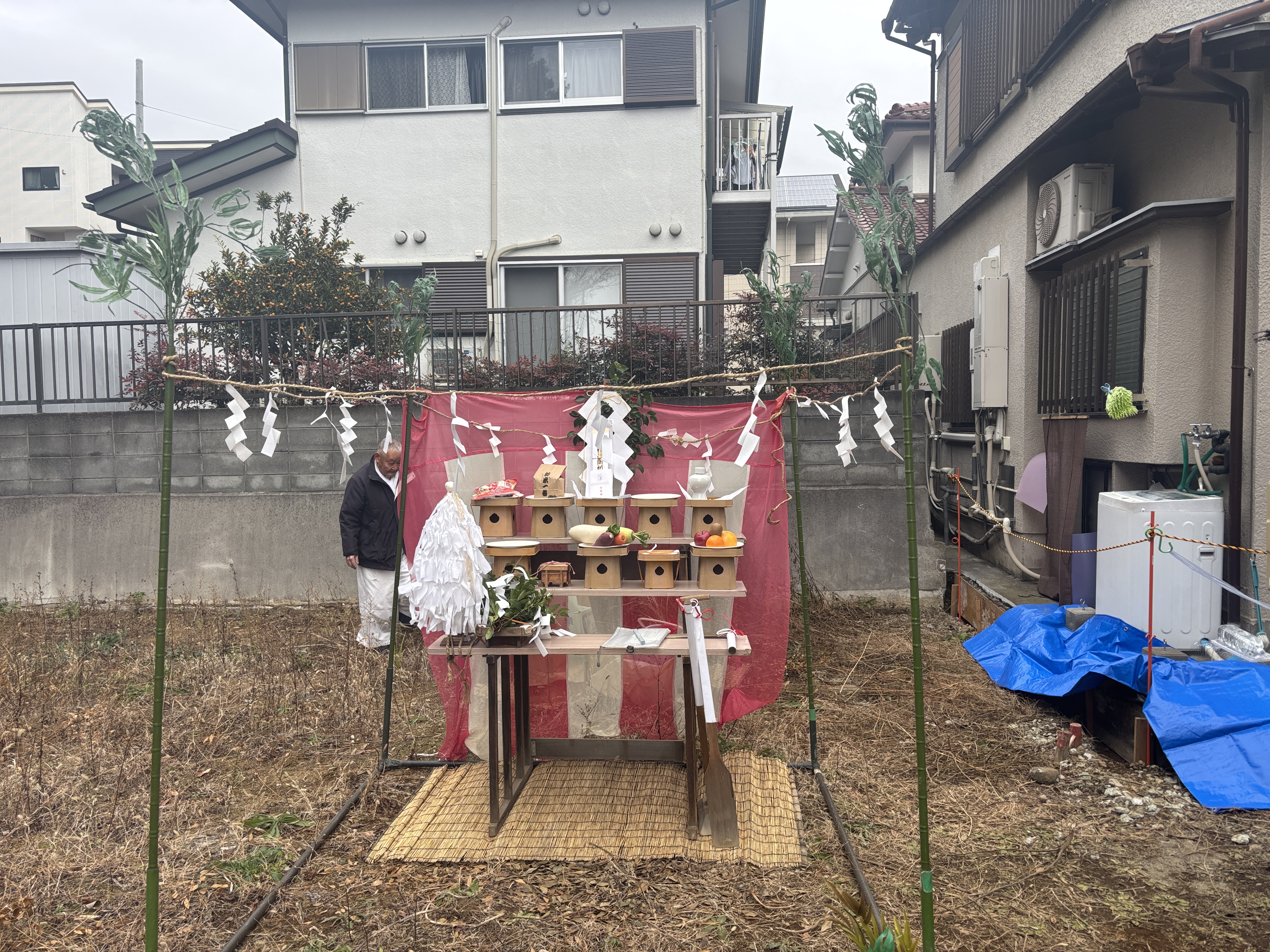 大地に関連する神々へ「このような工事をします」とご挨拶し、「お許しいただき、ありがとうございます」と感謝をお伝えいたしました。
